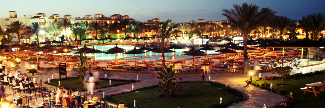 Hotel Dana Beach Resort - Poolanlage abends - Hotels in Hurghada